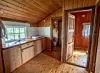 Du har full oversikt over hva som skjer på vannet, selv når du er på hytta. Kjøkkenet er godt utstyrt til fire.