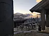 "Vasshuset" består av toalett, dusj, badstue, gang med grovkjøkken. Nydelig skiferbelagt sitteplass med bålpanne.